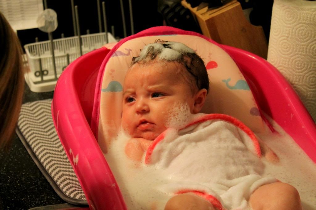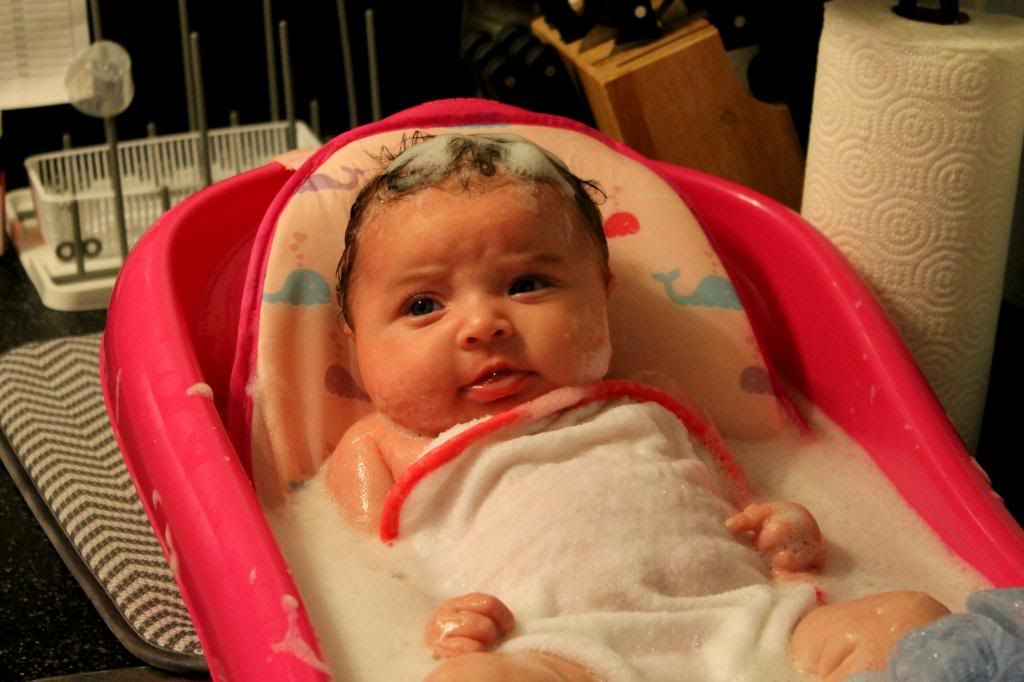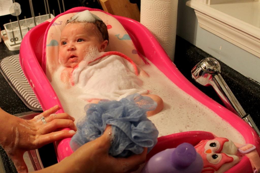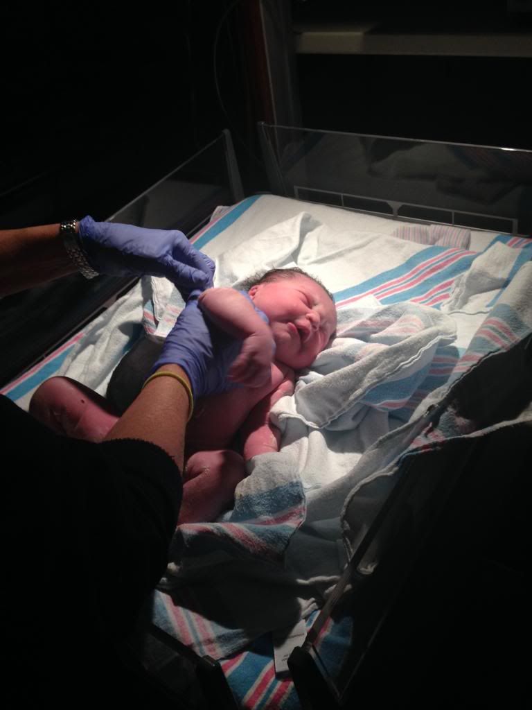 At 4:00, I was 10 cm and ready to push. Bull, my sister, and my mom stayed in the delivery room with me. When we first talked about it, Bull didn't really want anyone in the room with us when Hayven was born. His mind changed when we went to the childbirth class & the nurse talked to everyone about having someone in there, if possible, that's been through childbirth as well. I'm so glad he didn't mind because during delivery he did not say.a.word. We laugh now, but I think he was in total shock. The only thing he said was that the doctor was probably stepping on Hayven's hair because she had so much. Haha! He's a man of few words. After pushing for 40 minutes and by 4:40, I had my sweet baby girl & my life will never be the same. She weighed 7 lbs. even and was 19 1/2 in. long. I fell more in love than I had been with her already in my stomach instantly. I can't even express how much love I have for this child. I've always been told that you don't know love until you have a child, and everyone was so right. We are more blessed than I could ever imagine. How people don't believe in God is beyond me. She is a perfect gift, & I am so grateful to be chosen to be her mommy. It's so miraculous to know that she was growing inside me. I (with the help of God & Bull) made that! She's taught me so much already. I am not in control & God is. It's hard to put everything in God's hands. I'm a major control freak & like to have things planned out and know what's coming. I quickly realized to let go & let God. He's got this & I couldn't ask for anything better.