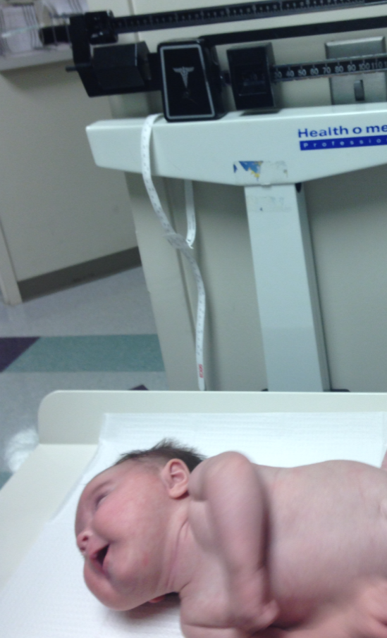 The first thing was to get measured. Hay was 21 3/4 inches long. She grew an inch since her last appointment & is in the 20th percentile.